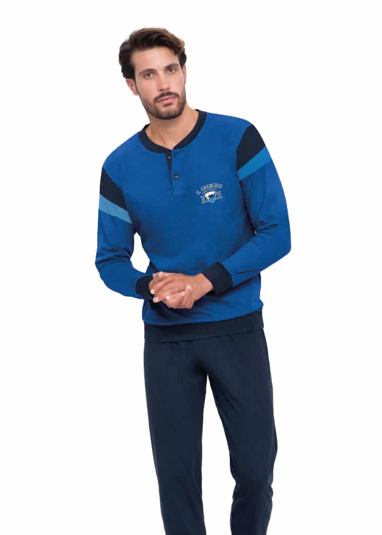 Composto da maglia girocollo modello serafino a mezza manica, bicolor; pantalone lungo tinta unita e tasca posteriore e pantalone corto a quadri con elastico in vita.