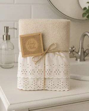 • Set Asciugamani Bagno 1+1 Lovely Shabby – Spugna di Cotone