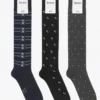 La confezione contiene 3 paia di calze fantasia nei colori classici blu, nero e grigio, ideali per abbinarsi facilmente sia a look eleganti che casual. Le fantasie geometriche rendono queste calze moderne e raffinate senza rinunciare alla praticitĂ .
