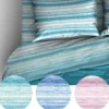 Il completo lenzuola 2 piazze è disponibile in tre varianti eleganti: acquamarina, blu e cipria, con fantasia a righe moderne che si adatta a camere sia classiche che contemporanee.