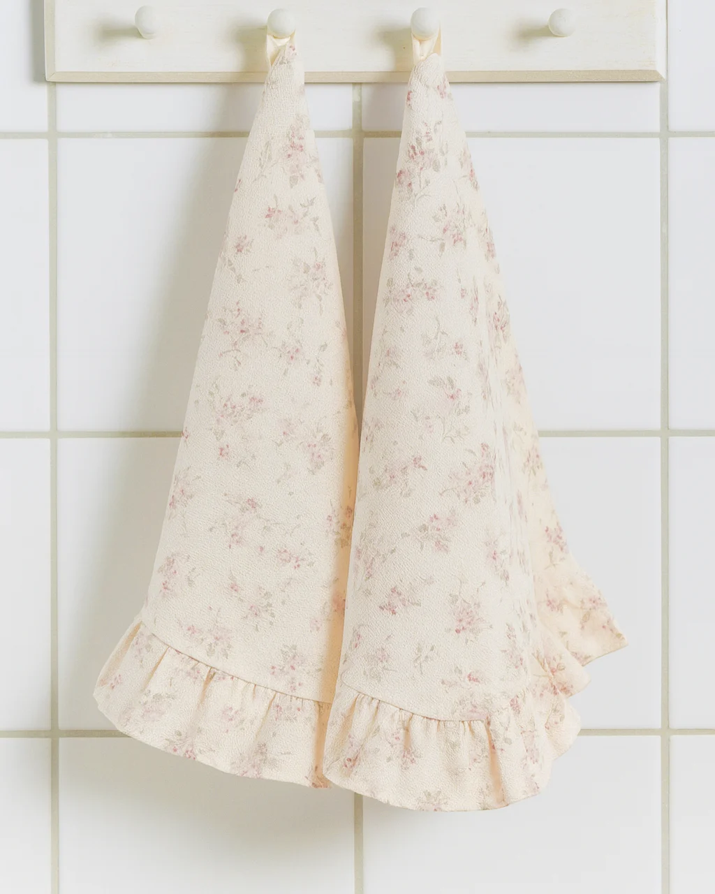 Rendi la tua cucina più elegante e accogliente con la coppia di strofinacci Lovely Shabby – Collezione Element.