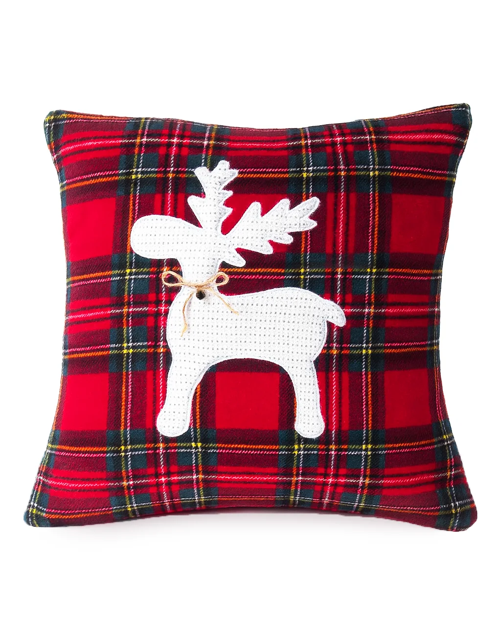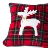 Il design scozzese a quadri rossi con renna applicata in tessuto bianco e fiocchetto decorativo lo rende un accessorio elegante e allegro, ideale per completare l’atmosfera natalizia.
