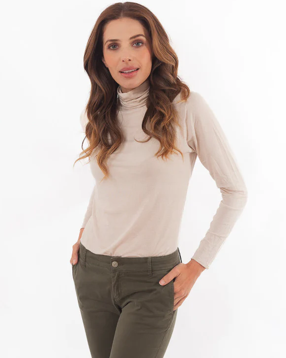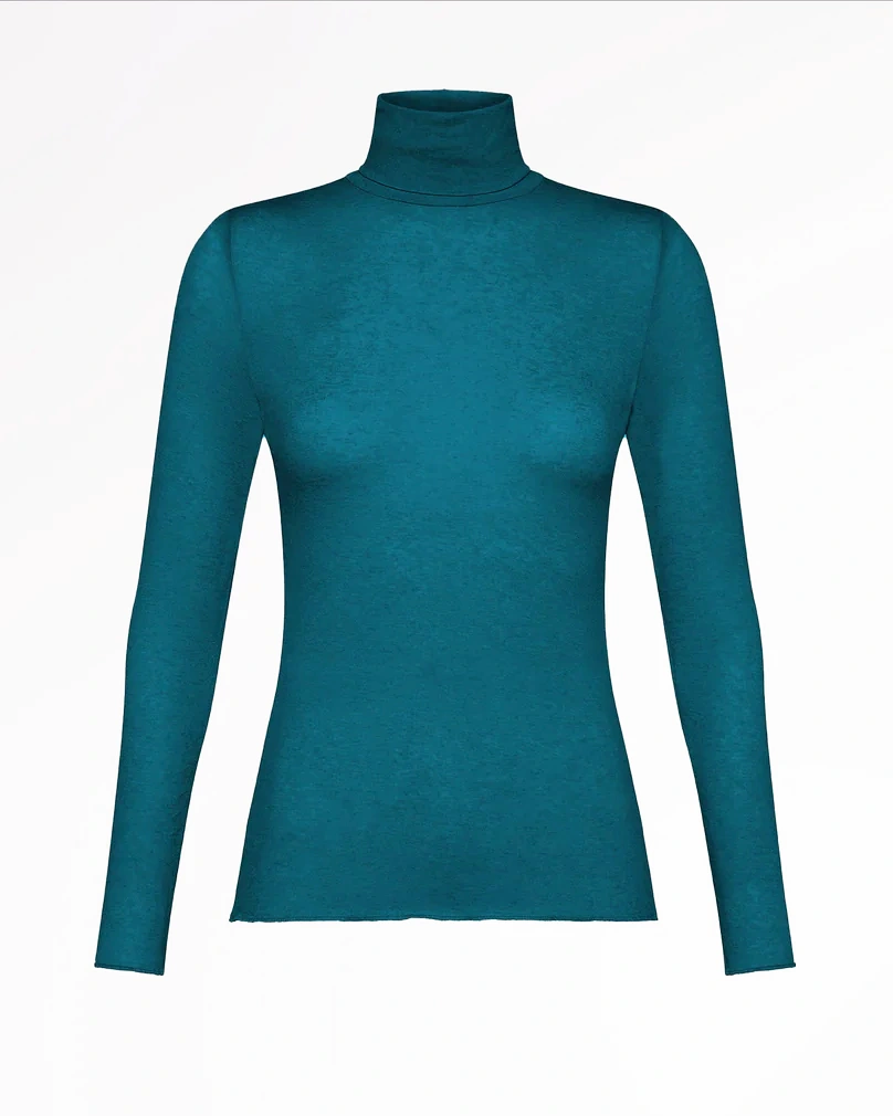 Questa maglia dolcevita a maniche lunghe è realizzata in un pregiato mix di Tencel™ (fibra di faggio ecosostenibile) 85%, cashmere 10% e 5% elastan, certificata Oeko-Tex® Standard 100, per garantirti sicurezza sulla pelle e rispetto per l’ambiente.