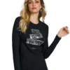 Con scollo a giro e una stampa serigrafata argento con la scritta “No one cares (except you)”.