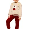 Colori disponibili: maglia beige con applicazione orsetto, pantalone rosso
