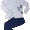 Vestibilità: La maglia è comoda con scollo a giro e bottoncini sul davanti. Pantalone con morbida fascia elastica sul girovita e bordo elastico sulla caviglia.