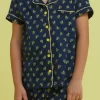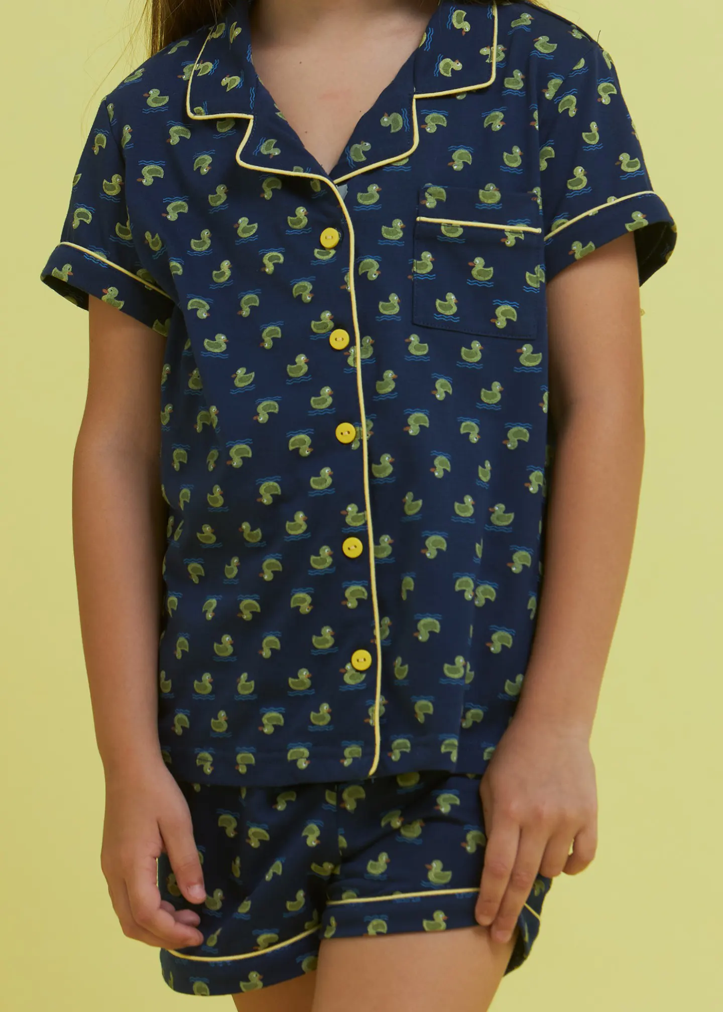 Composto da giacca mezza manica con abbottonatura frontale, taschino laterale, colletto rever su scollo a V e pantalone corto.