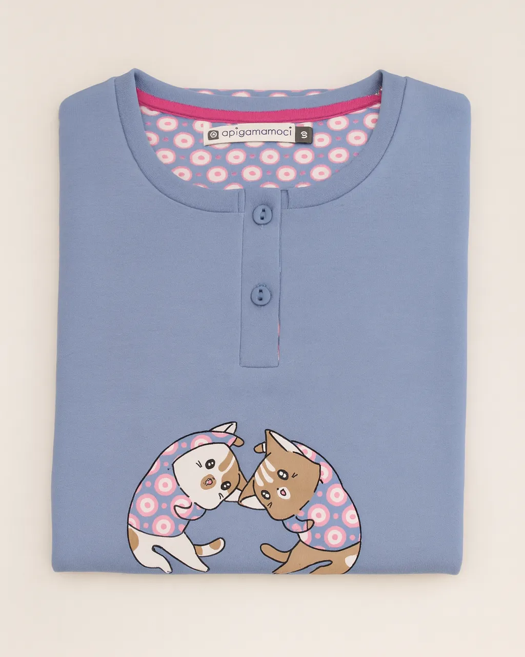 Disponibile nei colori Azzurro e Rosa, questo pigiama rappresenta il perfetto equilibrio tra praticità e eleganza. Ideale per chi cerca pigiami donna in caldo cotone comodi e di qualità, firmati da un marchio italiano sinonimo di comfort: Pigiamiamoci.