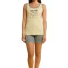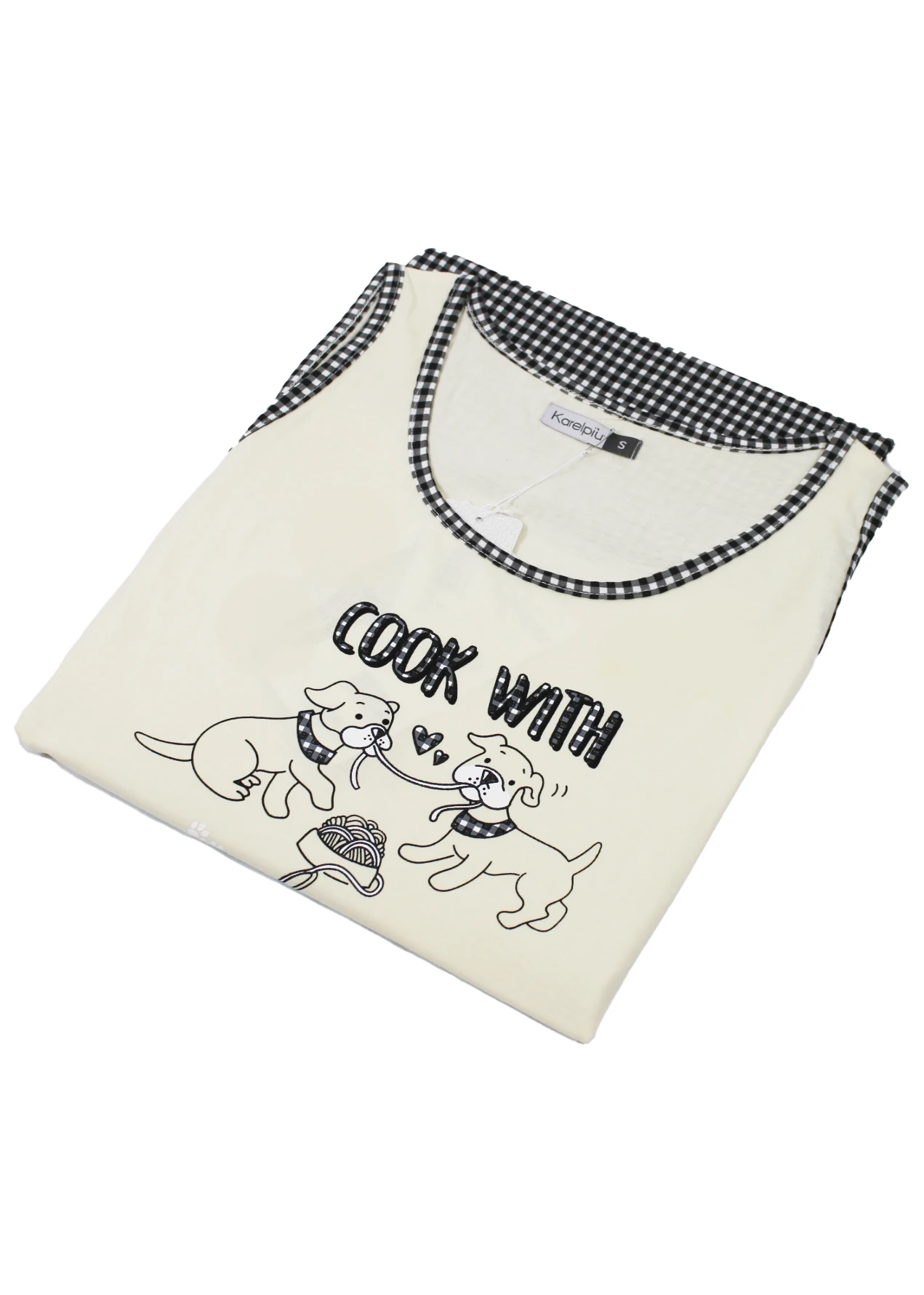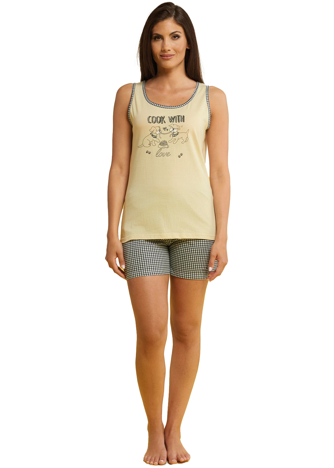 Maglia con comode spalline larghe con bordino stampato a scacchi come il pantaloncino corto con morbido elastico in vita senza laccetto.
