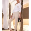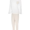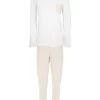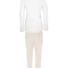 Composto da casacca girocollo a manica lunga, inserti color beige su polsi e taschino laterale e pantalone lungo con morbido bordo elastico in vita.