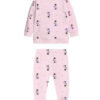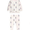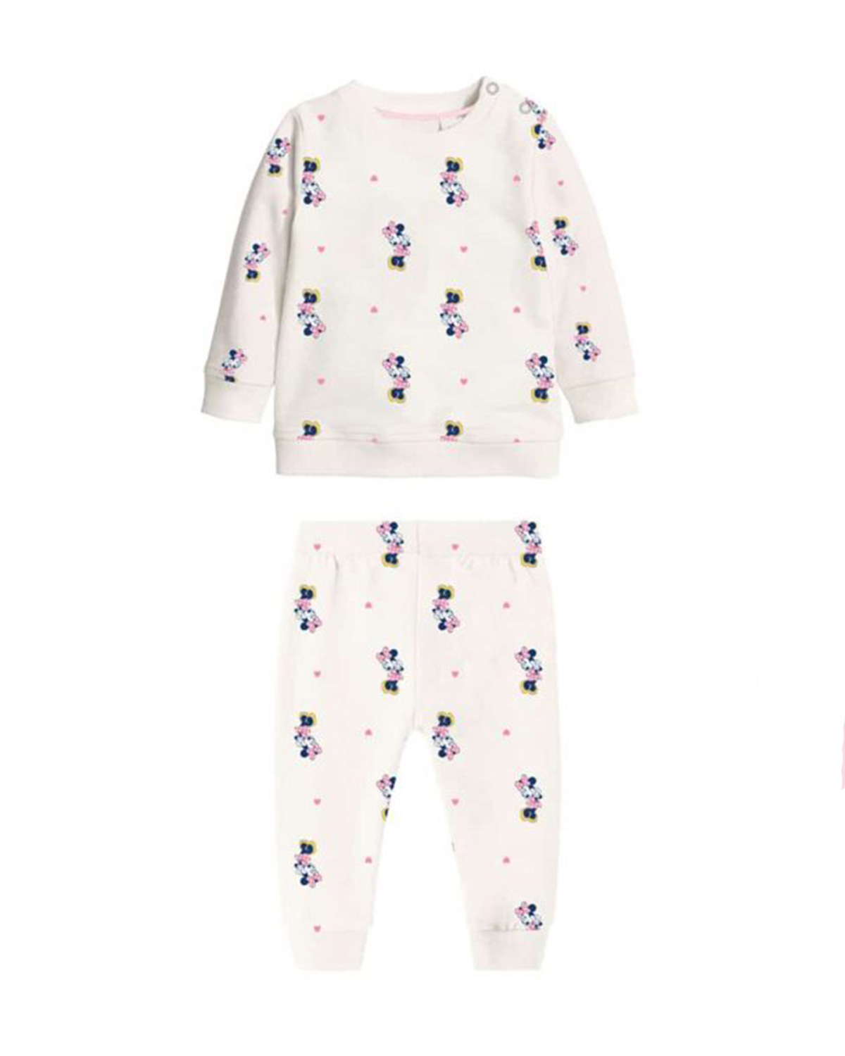 Composto da due pezzi, con maglia a manica lunga ed apertura laterale con bottoncini automatici sulla spalla per vestire con facilità la tua bambina, morbidi bordini su polsini e caviglie per tenerlo al caldo e delicato elastico in vita.