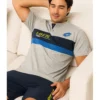 Maglia a mezza manica con applicazioni sulle maniche e colletto a giro con bottoncini, stampa del logo lungo la maglia. Pantaloncino corto con coulisse in vita e taschino posteriore.