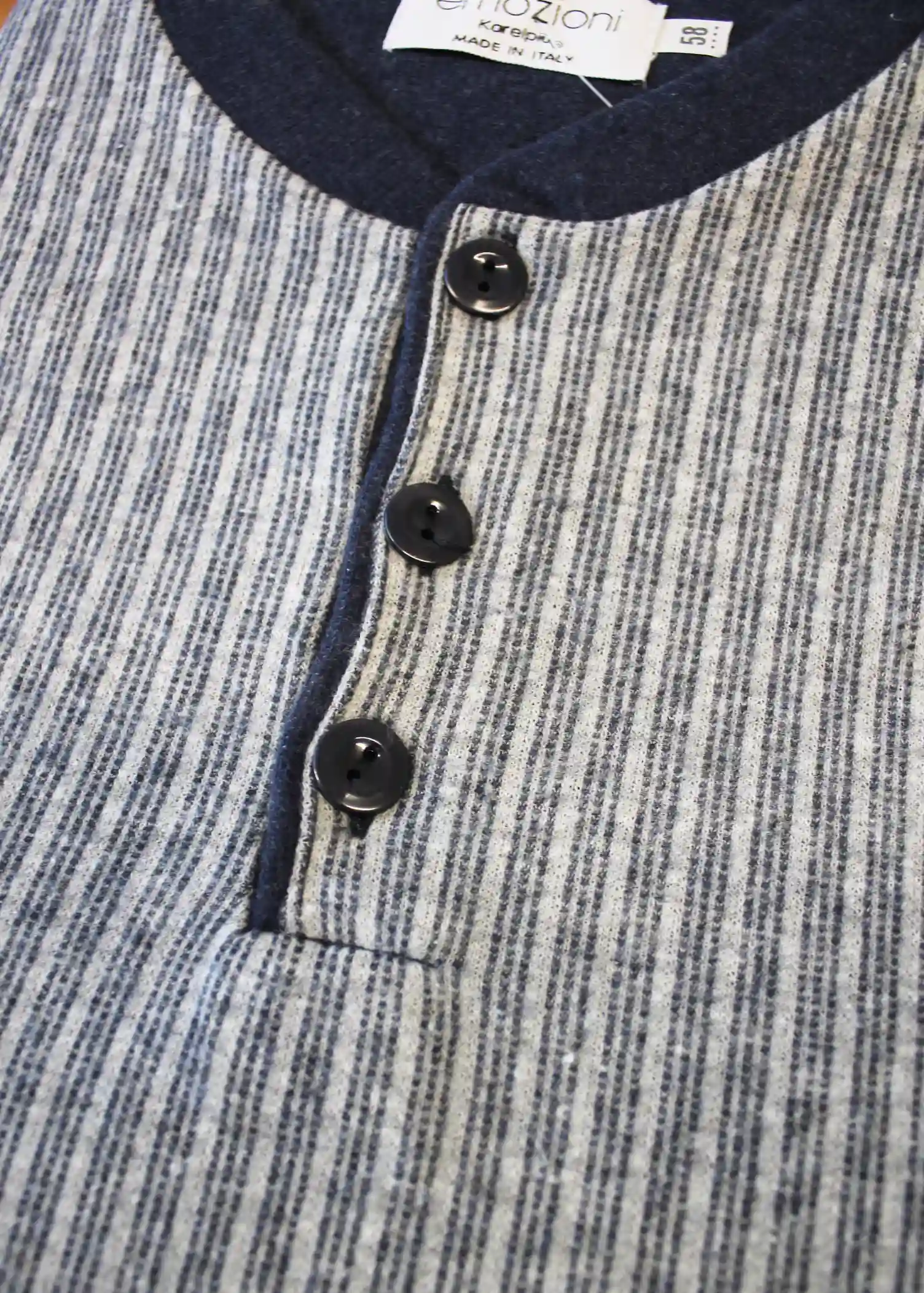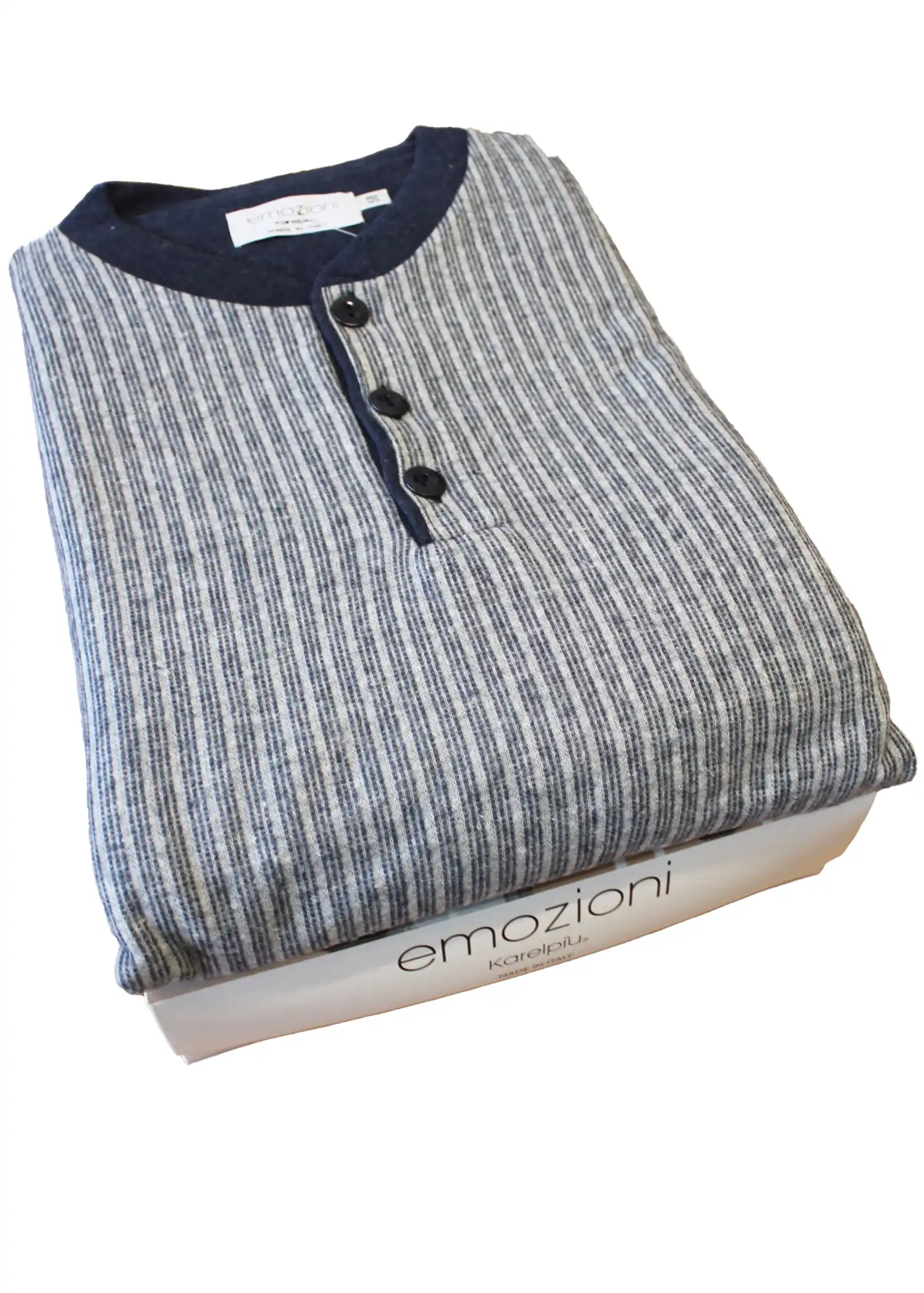 Pigiama Karel della linea EMOZIONI calibrato , prodotto dalle ottime rifiniture e dall’eccezionale rapporto qualità/prezzo che offre una bella sensazione di calore grazie al tessuto a maglia fitta in PUNTO MILANO adatto alle stagioni fredde.