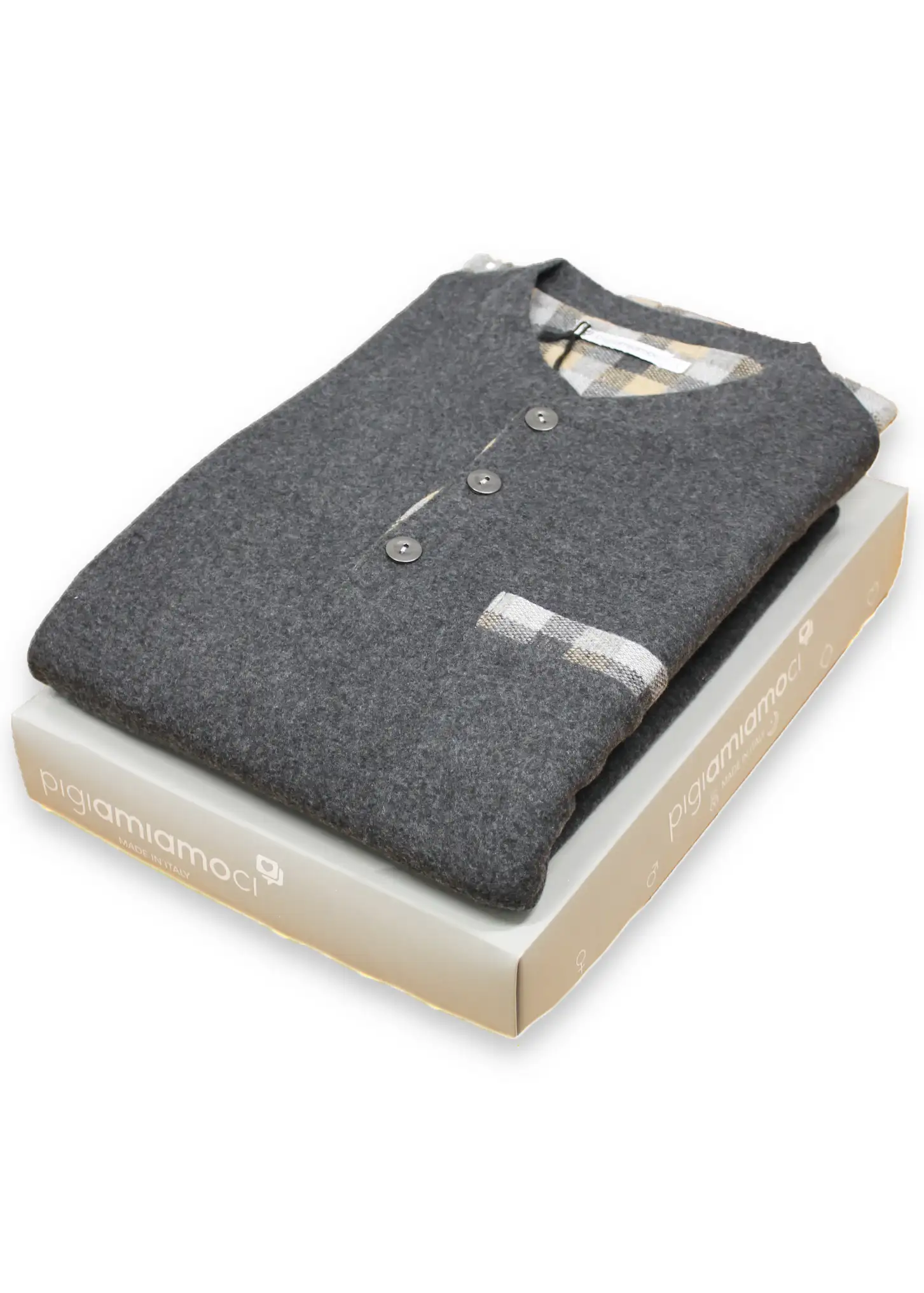 Dall’aspetto compatto e liscio, è utilizzato in questo Pigiama Il Granchio con una filatura in cotone, conferendo al capo un aspetto modellato e strutturato.