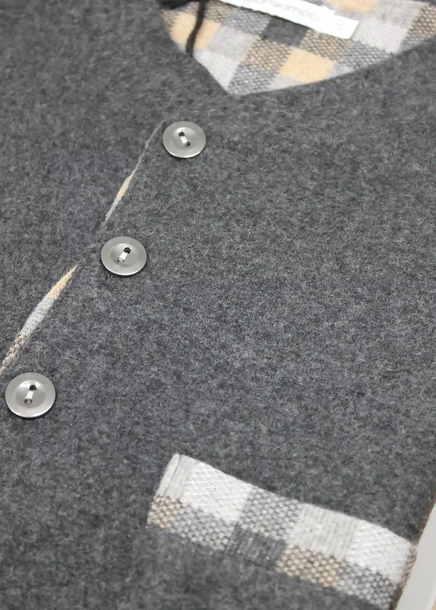 Rifinito minuziosamente con applicazione in tinta con il pantalone sul taschino a quadri stile scozzese beige/grigio. Un accostamento di colori davvero particolare!