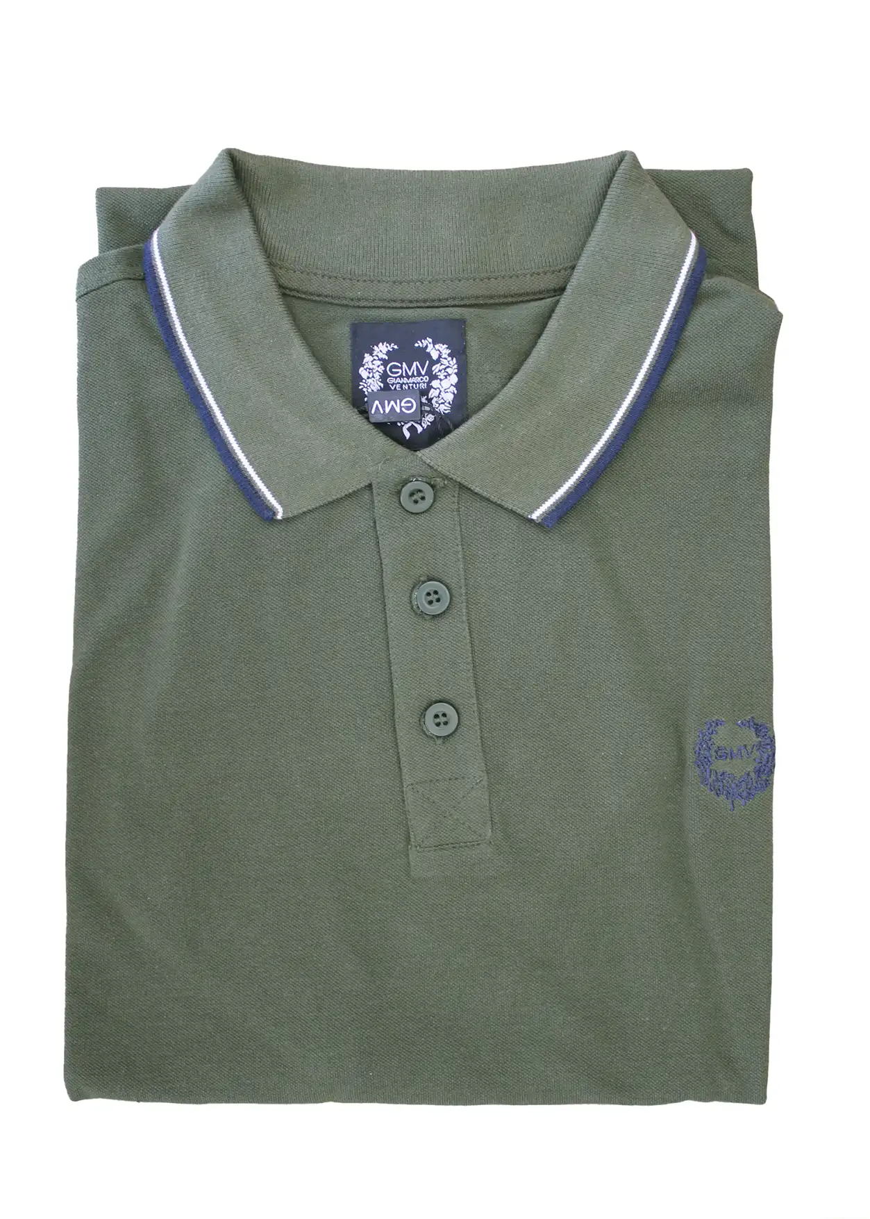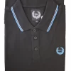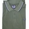 Colletto con bordino in tinto filo a contrasto come sulle maniche e logo sul petto.