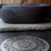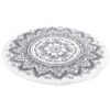 Rotondo, con base bianca e disegno di di rosone orientale grigio a contrasto.