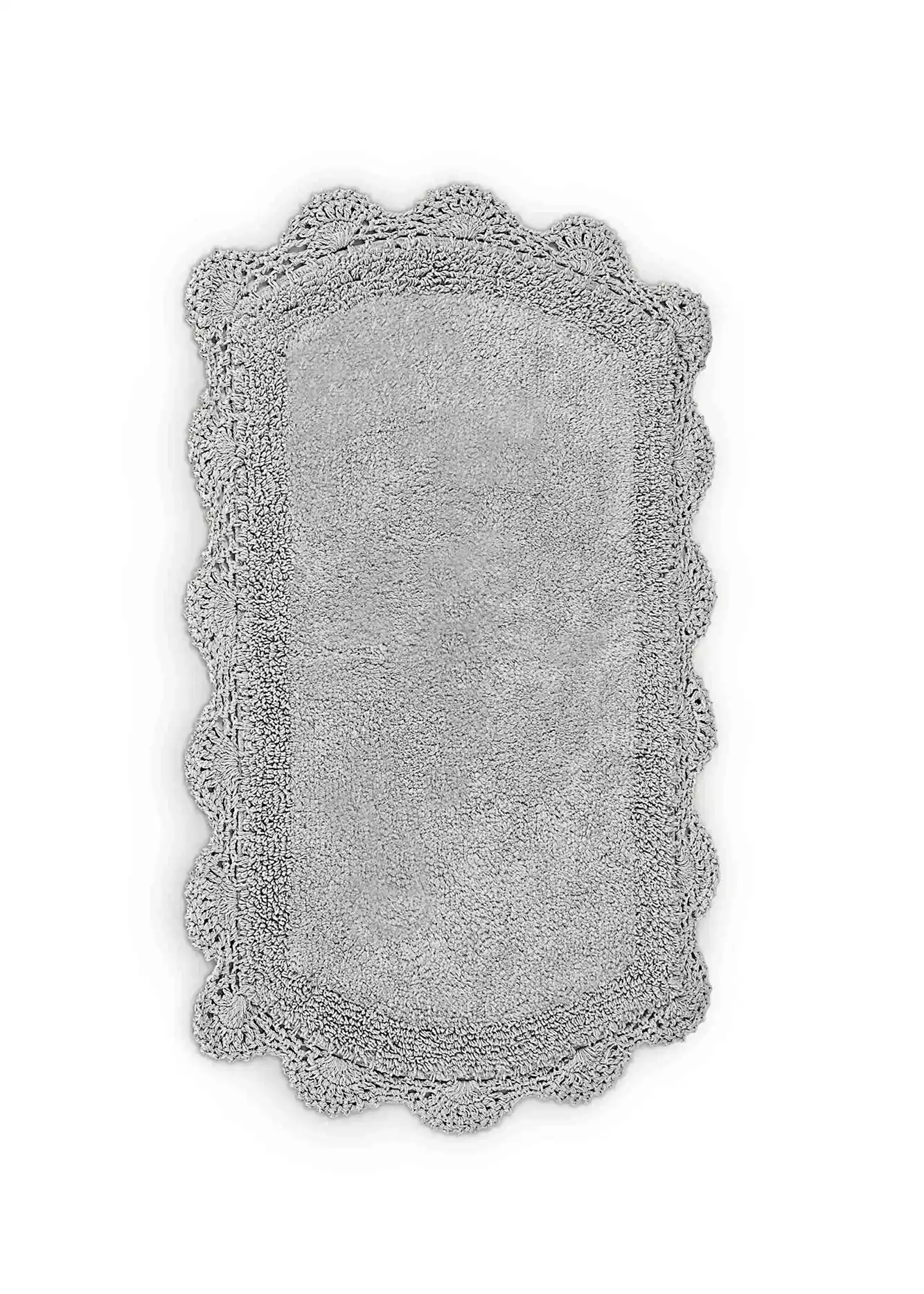 Tappeto Brigitte di Lovely Shabby, realizzato in puro cotone e rifinito con applicazione ad uncinetto lungo tutto il bordo, che lo rendono adatto sia alla camera da letto che alle stanze da bagno. Elegante e originale, è facilmente abbinabile agli altri prodotti Lovely Shabby.
