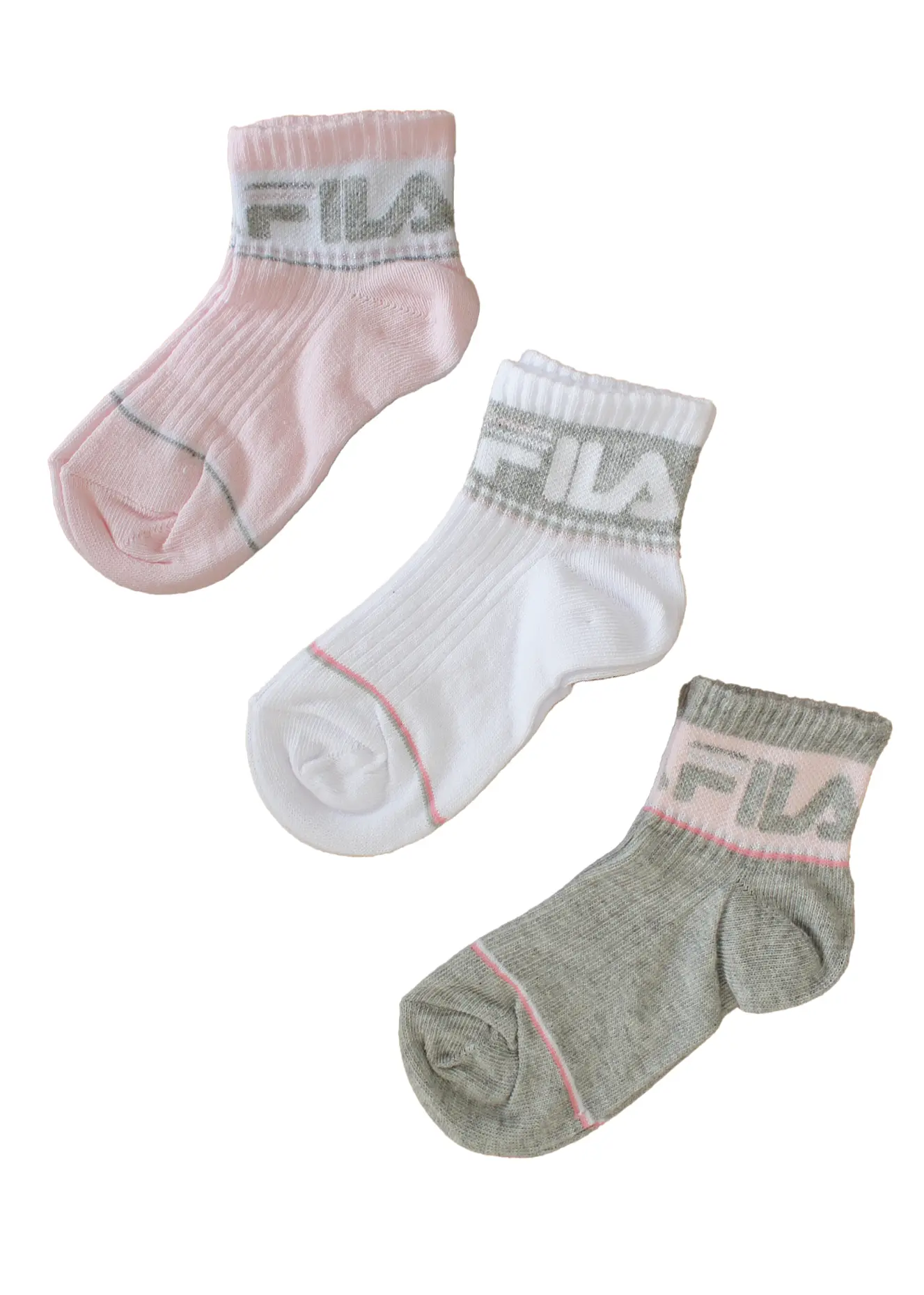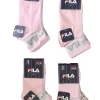 Disponibili in tre varianti di colore a tinta unita con scritta “Fila” sulla caviglia e decorazione bicolore su punta e caviglia: rosa grigio, bianco-grigio, grigio-rosa.