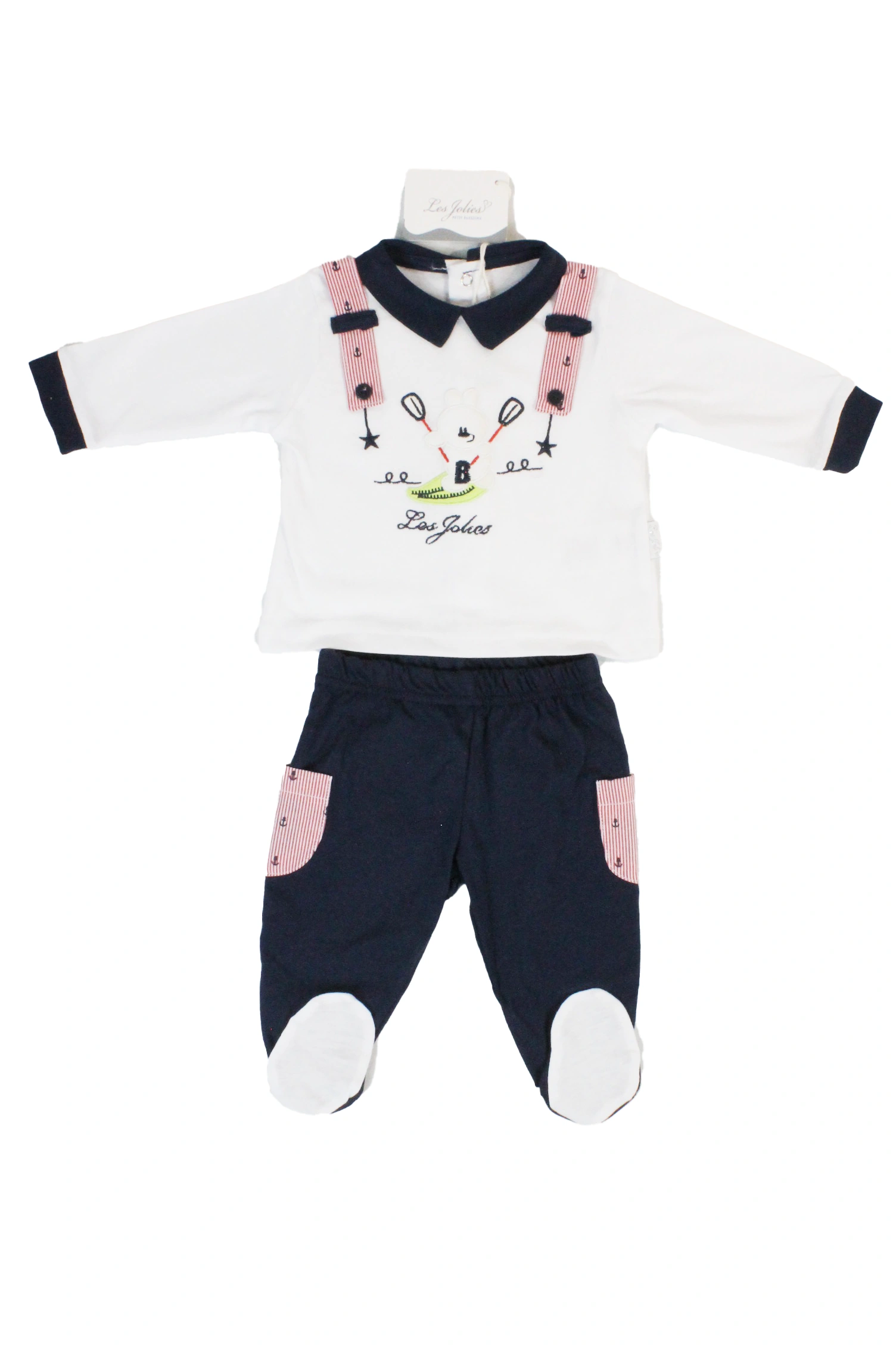 Tutina neonato due pezzi in puro cotone Les Jolies, ideale per i mesi estivi e per ambienti caldi.
